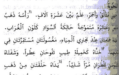 قامتك هذه شبيهة بالنخلة وثدياك بالعناقيد قلت اصعد الى النخلة و امسك بعذوقها وتكون ثدياك كعناقيد الكرم .....